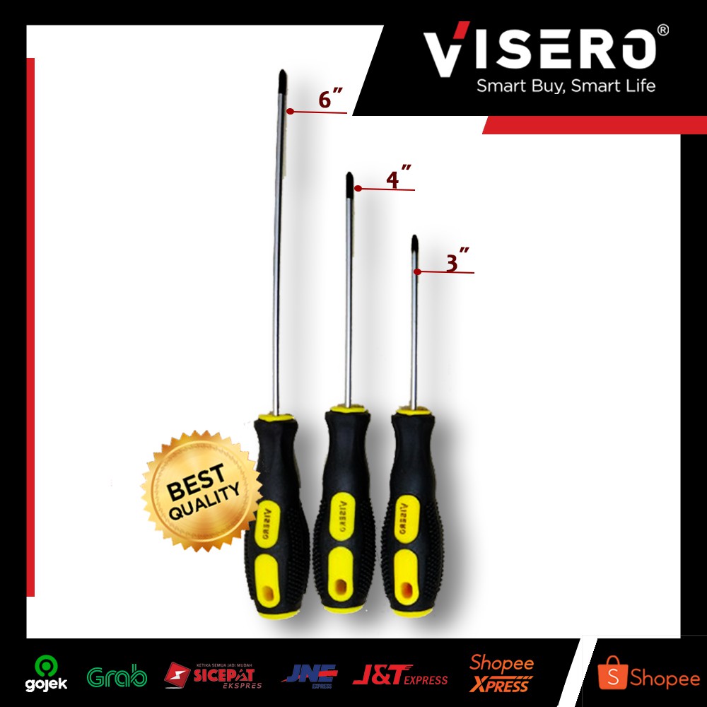Obeng Visero Panjang 3" dengan ujung magnet sehingga memudahkan pemasangan baut / mur.