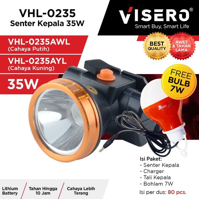 Senter Kepala 35W Cahaya Putih Bonus Lampu LED 7W (VHL-0235AWL)