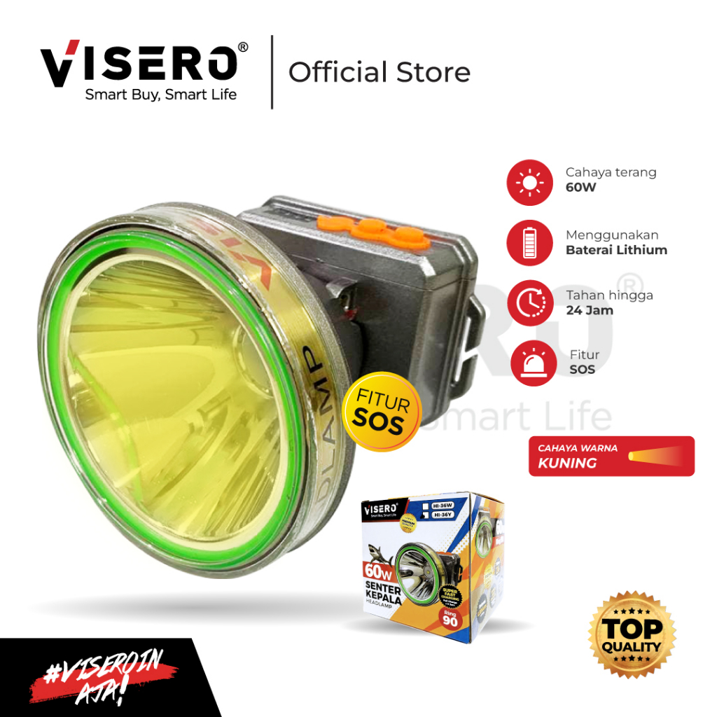 - Senter kepala berkualitas premium menggunakan lampu LED super terang, hemat energi dan tahan lama