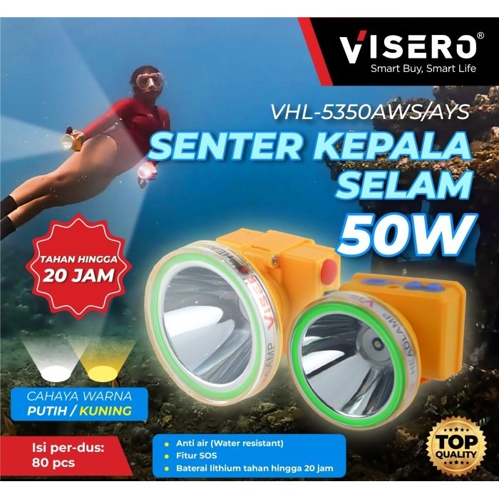 Senter Kepala Selam Body Sedang 50W Super LED Cahaya Putih Visero (VHL-4350AWS)