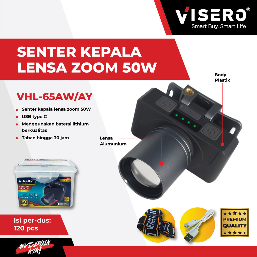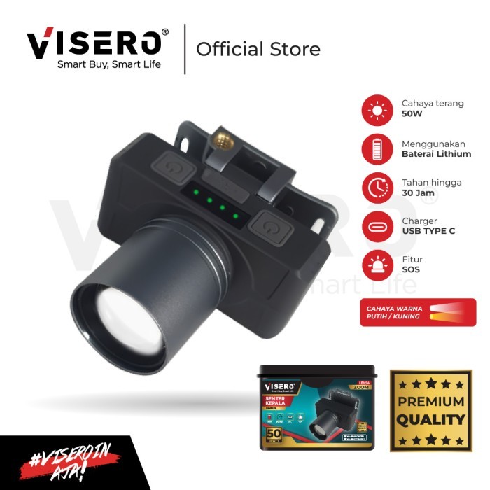Senter Kepala Zoom / Headlamp Lensa Zoom 50 Watt Super Terang Visero