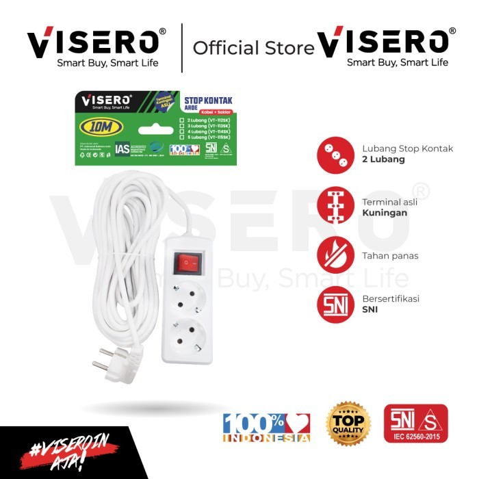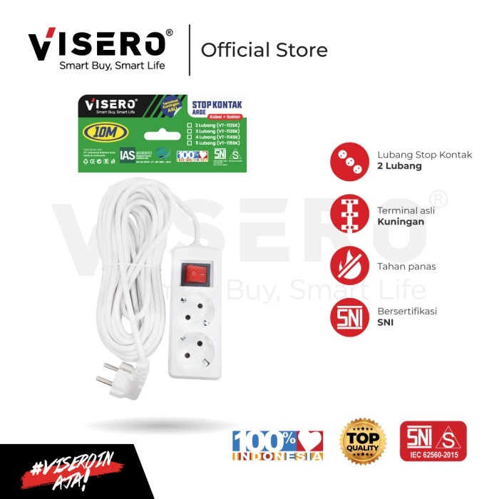 STOP KONTAK ARDE + SWITCH KABEL 2 LB VISERO 10M PUTIH (VT-112SK)